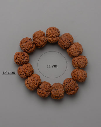 The large, substantial 18mm beads that make up the Rudraksha Bracelet make a big statement. These beads are a treasured accessory for people on a spiritual journey because of their rich history and ancient roots, which contribute to their recognized spiritual importance.