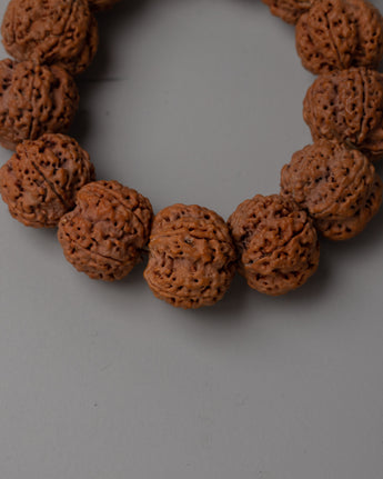 Wearers are reminded of the spiritual energy that permeates each Rudraksha seed as their fingers lightly brush against the textured surface of the beads. This physical experience acts as a continual reminder of one's spiritual connection to the divine and the path to enlightenment and inner serenity. The Rudraksha bracelet represents protection, auspiciousness, and spiritual development and provides wearers with a material connection to the hallowed customs of the past. It can be worn while meditation or as a daily decoration.