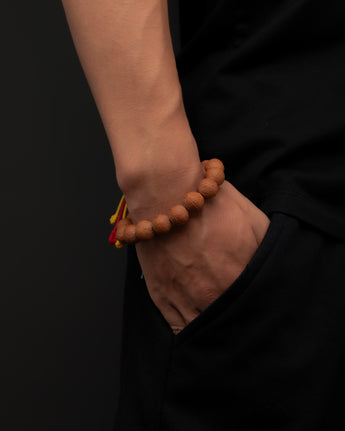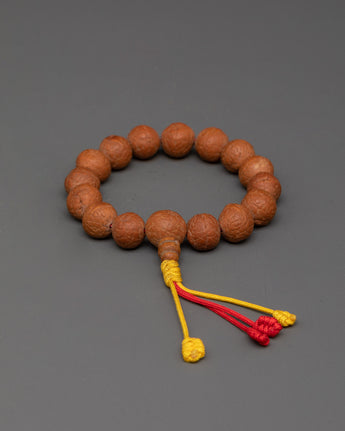 This exquisite Sacred Buddha Chitta Bracelet showcases the profound beauty of authentic Buddha Chitta seeds, revered in Buddhist traditions for their powerful spiritual properties. Measuring 15cm in height with a 5cm diameter and 8.5cm width, this lightweight 0.022kg Buddhist prayer bracelet features naturally textured seeds that display the characteristic ridged patterns sacred to meditation practitioners. Each Buddha Chitta seed carries deep symbolic meaning, representing the enlightened mind of the Buddha and serving as a tangible reminder of one's spiritual journey toward awakening. The warm brown coloration of the seeds develops a rich patina through use. At the same time, the vibrant yellow and red silk tassel adds traditional Tibetan color symbolism representing wisdom, compassion, and the unity of spiritual energies.
