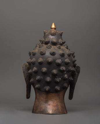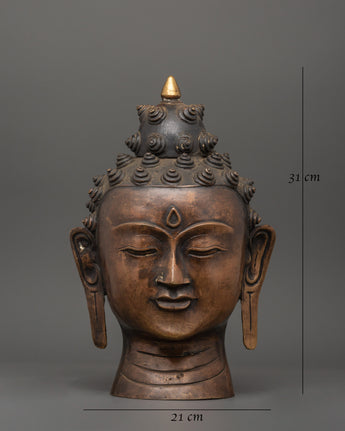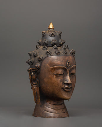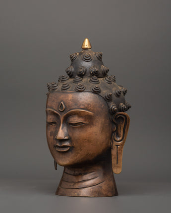 Sacred Buddha Head Sculpture | Handcrafted Oxidized Copper Buddha Head