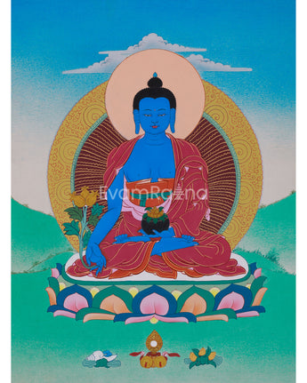 Sacred Buddha Medicine Thangka | Buddha of Healing and Protection