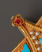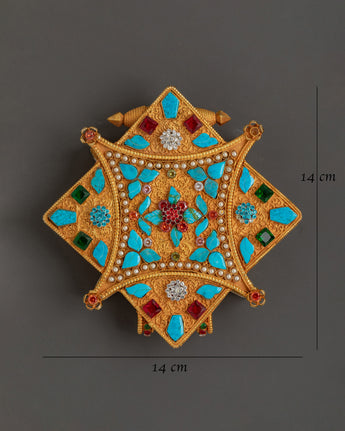 Embrace Tibetan tradition with this Handcrafted holy Buddhist Amulet Ghau Box, a sacred amulet used to hold prayers, relics, or spiritual benefits. This incredible item, measuring 14cm in height and breadth, contains brilliant turquoise inlays, colorful Artificial stones, and meticulous filigree artistry, making it both a strong spiritual instrument and a beautiful ornamental object.