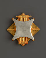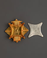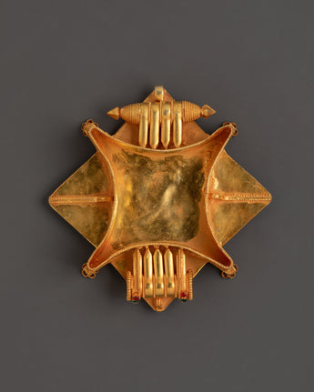 This 0.26kg Ghau box, crafted from copper with stunning gold plating and adorned with exquisite handcrafted filigree work, exemplifies traditional Tibetan craftsmanship. Ghau boxes, which are often worn or set on altars, are said to protect the person or the home by containing sacred mantras or relics that emanate heavenly blessings, calm, and spiritual power.
