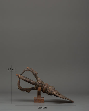 Sacred Buddhist Kartika Knife | Iron Ritual Dagger with Wooden Stand