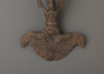 The Kartika Knife, also known as the flaying knife, is especially significant in Tibetan Buddhism. It denotes the elimination of ignorance, ego, and worldly attachments. The crescent-shaped blade is frequently connected with the knowledge of deities such as Vajrayogini, representing change and spiritual enlightenment. The intricate Vajra handle symbolizes unbreakable strength, emphasizing its importance as a spiritual weapon against harmful energy. This Tibetan ritual instrument is ideal for Buddhist practitioners, collectors, or as a meaningful spiritual gift, and it exemplifies the rich tradition of holy Buddhist items.