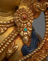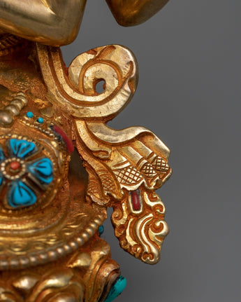 Sacred Chenrezig Buddha Statue | 24K Gold Gilded Avalokiteshvara with Hand Carved Gemstones