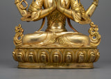 Elegant Chenrezig Buddha Statue | 13.8-inch 24K Gold Gilded Copper Sculpture