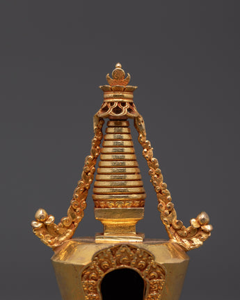 Sacred Copper Buddhist Shrine | Handcrafted Gold Plated Tibetan Decor