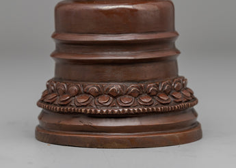 Sacred Copper Kadampa Stupa with an oxidized copper body provides an interesting and appreciated presence in any spiritual setting. This stupa, 18.5 cm tall, 8 cm wide, and weighs 0.68 kg, represents traditional Buddhist creativity with a subtle as well, historical finish. The copper has a traditional attractiveness which symbolizes timelessness and spiritual strength. Its slight measurements and intricate workmanship make it an ideal complement to any altar, meditation area, or personal space.