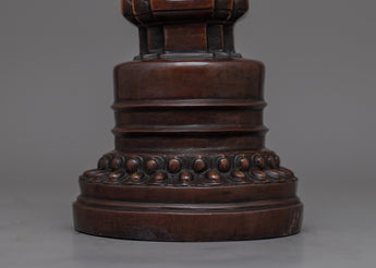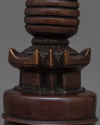 We present the finely made Sacred Copper Stupa, which embodies the spirit of Buddhist spirituality and heritage. This stupa, which is crafted from oxidized copper, captures the eternal beauty and deep meaning of these hallowed temples. The stupa's beautiful finish of oxidized Copper lends it an ancient, hallowed look that heightens its spiritual significance and makes it the center of attention in any area.