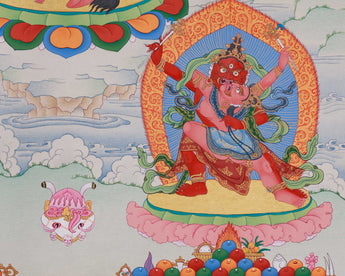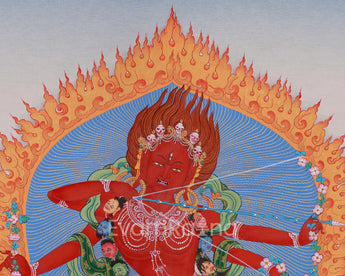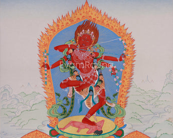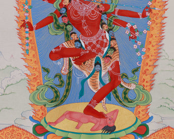 Created with meticulous care, the Dakini Kurukulla Thangka is a masterpiece of traditional workmanship. Hand-painted on premium cotton canvas using natural stone colors and enhanced with genuine 24K gold, this artwork is a testament to its timeless beauty and purity. The natural stone colors add depth and richness to the imagery, while the 24K gold highlights the divine nature of the deities, giving the piece a sacred glow. The Karma Gadri style, painted in the ancient Tibetan technique, lends authenticity to the thangka, making it both a work of art and a spiritual artifact.