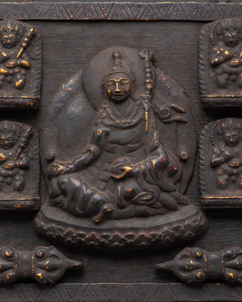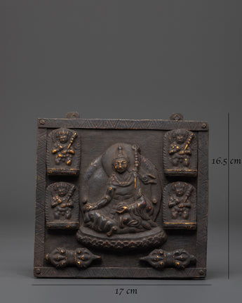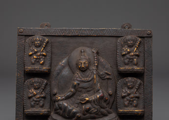 This sacred Deity Wall Hanging is a beautifully crafted piece of Tibetan Buddhist art designed to infuse your space with blessings, protection, and a profound sense of holy presence. Measuring 17 cm in width, it features Guru Rinpoche seated in a posture that radiates both power and compassion, surrounded by four figures. These protectors symbolize the safeguarding of spiritual truth and the removal of obstacles on your path. Perfect for altars, meditation rooms, or as a striking focal point in any sacred area, this wall hanging invites peace and spiritual strength into your daily life. This Sacred Deity Wall Hanging is crafted from copper with an elegant antique finish that highlights its intricate details