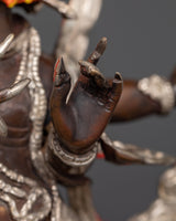 Sacred Four-Armed Mahakala Statue | Oxidized Copper Body with Acrylic Paintings