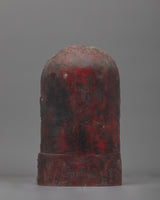 The sacred Green Tara Statue with Throne is 11 inches tall and depicts Green Tara seated elegantly on a throne, signifying her function as a guardian and rescuer of all beings. This statue is handcrafted from a copper body and delicately adorned with 24K gold gilded, gold, and acrylic paintings, giving it a celestial air. The beautifully constructed throne gives a sense of grandeur, making this a mesmerizing center point in any shrine, altar, or meditation room. The base, which measures 6.9 inches, is robust and safe, guaranteeing that the statue stands firm and stable.