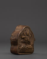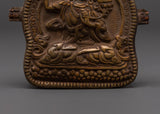 Immerse yourself in the sacred energy of the Himalayas with this Sacred Mantra Ghau Box, a traditional Tibetan prayer box meticulously handcrafted from copper. Measuring 9cm in both height and width and weighing just 0.19kg, this compact yet powerful shrine is perfect for carrying sacred mantras, relics, or spiritual offerings wherever you go. The front showcases a finely detailed relief of a Buddhist deity, symbolizing divine presence and spiritual strength, making it a meaningful companion for meditation, protection, and personal devotion. Its exquisite craftsmanship and profound symbolism make this Ghau Box an essential treasure for spiritual seekers and collectors alike.