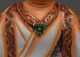 The statues' exquisitely fashioned copper bodies and 24K gold gilding draw attention to their dignified stances and the intricate details of their robes and features. The vibrant and detailed acrylic and gold paints bring each figure's distinct qualities and historical significance to life.