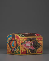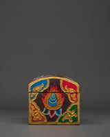Crafted from wood and finished with acrylic colors, the exterior reflects traditional Tibetan artistry. This box helps you keep your sacred items organized and protected while enhancing the beauty and sanctity of your altar space. Whether used as a daily practice companion or as a keepsake for ceremonial tools, this box supports mindful living and spiritual intention.