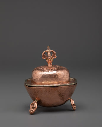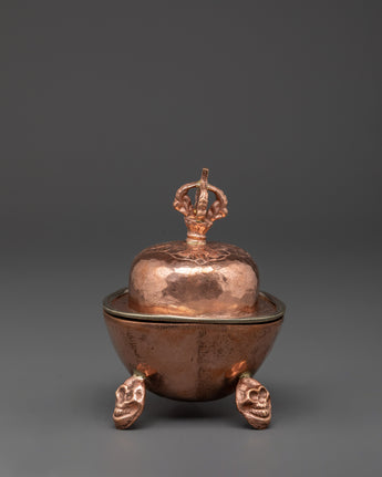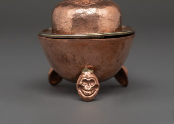 Traditionally shaped to resemble skull cups, these sacred bowls symbolize the transmutation of worldly attachments into spiritual insight. Used by monks and tantric practitioners, the Kapala set holds offerings such as wine, grains, or saffron water to honor deities and accumulate merit. Beautifully handcrafted, these copper ritual vessels make a powerful addition to your altar or ceremonial space.