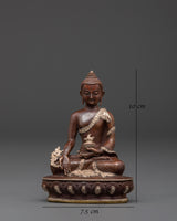 This Sacred Sculpture of the Medicine Buddha embodies the compassionate healing deity revered in Buddhism for his vows to alleviate suffering and restore harmony. Crafted from oxidized copper with a silver-plated finish, the statue measures 10cm in height and 7.5cm in width, weighing 0.18kg, making it a perfect size for meditation rooms, home shrines, or sacred spaces. Beyond its intricate design, this statue serves as a powerful symbol of divine healing and spiritual protection, inspiring a sense of peace and well-being. Place it in your sacred environment to support your healing journey and deepen your spiritual practice.
