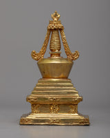Meticulously handcrafted on a Copper body and adorned with a lavish coat of 24k Gold Plating , the Sacred Stupa Statue stands as a resplendent symbol of spirituality. With its impressive height of 17cm, this stupa commands attention and reverence, showcasing intricate craftsmanship that harmonizes tradition with modern aesthetics. The gleaming golden facade exudes an aura of sanctity, embodying the profound significance of Buddhist teachings. Whether displayed in a sacred sanctuary or cherished for its artistic grandeur, the Sacred Stupa Statue holds a space for contemplation, inviting individuals to connect with its divine essence and find solace in its timeless beauty.