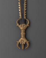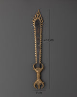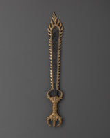 This Tibetan Sacred Sword is a masterfully crafted ceremonial tool, combining iron and brass to ensure both strength and elegance. Measuring 40.5 cm in height and 6 cm in width, it is perfectly sized for use in Tibetan rituals and spiritual ceremonies. Symbolizing purification, strength, and the power to cut through spiritual blockages and ignorance, this sacred sword serves as a potent emblem of transformation and clarity. Whether incorporated into your ritual practice or displayed as a meaningful artifact, it enriches your holy space by inspiring focus, protection, and spiritual growth on your journey toward enlightenment.