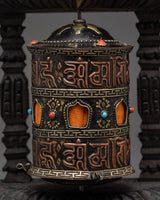 Sacred Tibetan Spinning Mantra Wheel | Copper, Coral, and Turquoise Stones