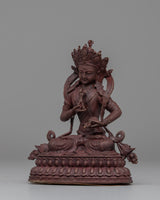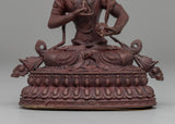 Vajrasattva represents spiritual regeneration and purification in Buddhist imagery. He is shown sitting in the lotus stance, or vajrasana, which stands for steadiness and concentration. A vajra, or thunderbolt, in his right hand represents the might of insight and its ability to vanquish ignorance. He is holding a ghanta (bell) in his left hand, which stands for the clarity of understanding and the fusion of compassion and wisdom. This figurine serves as a powerful reminder of spiritual purification, rebirth, and the journey to enlightenment because of Vajrasattva's peaceful face, which expresses inner purity and divine calm.