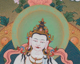 Our hand-painted Vajrasattva Thangka on a luscious cotton canvas is a testament to the fusion of artistic mastery and spiritual significance. Meticulously crafted with acrylic colors, the Thangka showcases a vibrant and dynamic representation of Vajrasattva, the embodiment of purification and enlightenment. Each brushstroke carries the artist's devotion, capturing the divine essence with precision and authenticity. What distinguishes this masterpiece is the infusion of genuine 24K gold, lending a luxurious and sacred radiance to the artwork. The use of acrylic colors allows for a rich palette, highlighting the intricate details of Vajrasattva's presence. The inclusion of 24K gold not only adds opulence but also symbolizes the transcendental qualities associated with this revered deity. Our hand-painted Vajrasattva Thangka serves as a visual portal to purification and spiritual transformation, inviting viewers to immerse themselves in the radiant beauty and profound teachings embodied by this sacred art.