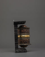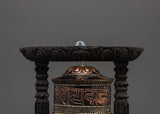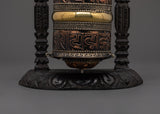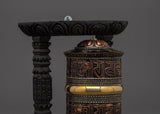 Sacred Wooden Framed Prayer Wheel | Copper and Brass Tibetan Mantra Wheel