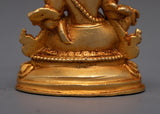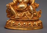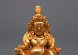 Introducing the wonderfully made Sadhana Jambhala Statue, finished with an attractive 24k gold plating. A sign of prosperity and fortune in Buddhist tradition. This statue, which stands 6 cm tall, is a detailed representation of Jambhala, the god of wealth and abundance. The statue seems radiant and regal because to the beautiful gold plating, which accentuates the exquisite features and luxurious feel.