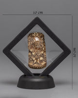 The Shakaya Mahakala is a stunning piece that has been carefully embedded in a frame and held by two clear vacuum plastics to allow for viewing from both sides. This unique display is perfect for showcasing the intricate details of the deity and can be easily opened. The tabletop stand is both elegant and functional, allowing you to proudly display your prized possessions. The Shakaya Mahakala is a beautiful addition to any collection and is sure to catch the eye of anyone who sees it.