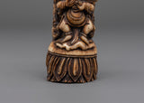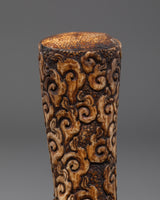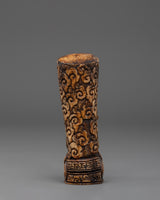 The Sakya Mahakala Stamp features intricate carvings of Mahakala's powerful and protective figure, which is often depicted with a skull crown and a vajra, surrounded by symbols that denote purification and strength. The buffalo bone gives a grounded and natural aspect to the stamp, representing the link between the physical and spiritual worlds. The carvings are based on traditional Tibetan ceremonial tool themes, emphasizing Mahakala's ability to remove impediments and encourage spiritual growth. The combination of ethically sourced buffalo bone and intricate patterns yields a sculpture that is both spiritually potent and a work of art.