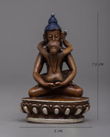 The machine-made Samantabhadra Consort Samantabhadri Statue is a magnificent portrayal of Samantabhadra. It is finished with an attractive silver plating. This 7.5-cm-tall statue represents the union of wisdom and compassion by showing the celestial couple in a harmonious stance. The delicate features are enhanced by the use of oxidized copper as the base material. The overall appearance is made more calm and radiant by the silver plating.