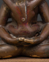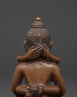 The elaborate craftsmanship and symbolic elements of this Tibetan Buddha sculpture reflect profound spiritual meaning, serving as both a source of aesthetic beauty and a reminder of the knowledge and compassion required in everyday life. Weighing only 0.38kg, it is a potent sculpture that will enrich your sacred space or meditation practice.