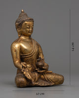 The intricate dragon detail is painstakingly carved to represent strength, protection, and enlightenment. These characteristics, combined with Sangye Menla's serene and compassionate demeanor, form a powerful representation of spiritual healing. The 24k gold plating enhances the divine presence of the statue, making it a radiant addition to any space.