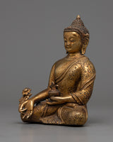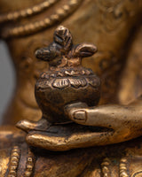 Embrace the healing energy of Sangye Menla, the Medicine Buddha, with this handcrafted copper statue adorned with 24k gold plating. This statue is more than just a representation of the Buddha; it is also a symbol of healing and well-being. The unique dragon carving on the Buddha's back adds a layer of majestic power and wisdom, which is associated with the dragon in many Eastern cultures.