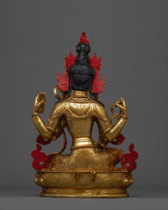 Handcrafted 24K Gold Gilded Statue | Saraswati Hindu Goddess of Knowledge