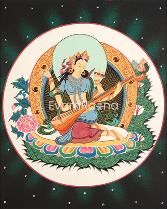 Saraswati, Medicine Buddha, Green Tara, Samantabhadra Thangka | Religious Painting