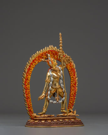 Expertly handcrafted by skilled Nepalese artisans, this statue is made from oxidized copper, adorned with gold plating, and detailed with acrylic colors to bring out its intricate features. The craftsmanship reflects both precision and devotion, ensuring every curve and detail honors her sacred essence. Weighing 1.11kg, it is substantial, perfect for both ritual use and artistic display. Whether you are a practitioner seeking a powerful spiritual tool or a collector of fine Buddhist art, this piece embodies deep cultural heritage and spiritual significance.