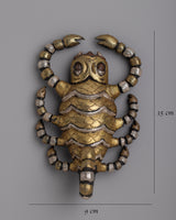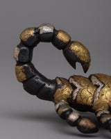 But the part of the statue that is skillfully carved from copper and coated in silver is what really makes it unique. This gives the sculpture an amazing contrast and draws attention to the fine details of the scorpion's attributes, such its frightening claws and segmented body. The mix of various metals not only makes the statue more aesthetically pleasing, but it also highlights the artist's ability and competence.