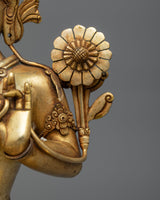 Our Seated Arya Tara statue is an example of unique craftsmanship, having been precisely crafted from copper and gilded with 24K gold. Every detail has been expertly crafted by artisans, guaranteeing an unmatched work of art. Enlightened elegance is embodied in every stroke of the artisan's hand that brings Arya Tara's peaceful expression and compassionate presence to life. The figurine, with its superb craftsmanship and detailed details, exudes spiritual energy and gives comfort and inspiration to everyone who sees it. This celestial emblem of wisdom and compassion will elevate your sacred place.