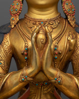 This statue, skillfully made from a copper body and embellished with 24K gold gilding, radiates a celestial brilliance. The elaborate gold and acrylic paintings depict Chenrezig's sympathetic look as well as the gorgeous, flowing robes that represent his purity and spiritual authority. Weighing 17.55 kg, its significant presence heightens the holiness of its surroundings, making it an essential addition to personal meditation spaces, yoga studios, or spiritual centers.