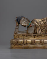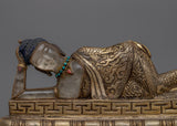 Serene Sleeping Buddha Statue | Copper with Decorative Stones