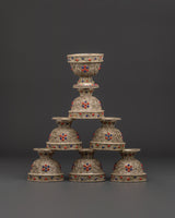 Set of 7 Tibetan Offering Bowls | Ideal for Buddhist Meditation and Devotional Offerings