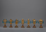 The Set of Seven Royal Treasures Auspicious Symbols is a painstakingly handmade collection that showcases the unique creativity and spiritual legacy of Tibetan workmanship. With amazing gold plating and copper body, each piece in this stunning set reflects deep cultural significance and painstaking attention to detail. The Precious Wheel, Precious Jewel, Precious Queen, Precious Minister, Precious Elephant, Precious Horse, and Precious General are among the Seven Royal Treasures, sometimes referred to as the Seven Precious Possessions, and they each represent different facets of Buddhist teachings and royal values.