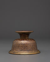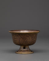 Made from copper with brass detailing, these bowls symbolize the seven traditional offerings: water for drinking, water for washing, flowers, incense, light, perfume, and food. Arranged on an altar and filled daily, they help cultivate mindfulness, generosity, and spiritual discipline. The polished surfaces and handcrafted quality reflect authentic Himalayan artistry, making this set ideal for practitioners, collectors, or sacred space enhancements.