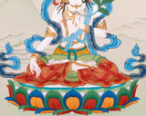 This stunning Seven-Eyed Goddess Thangka features White Tara, renowned for her compassionate healing and longevity. Hand-painted with meticulous care on high-quality cotton canvas, this small thangka is enriched with 24K gold and natural stone colors, enhancing its spiritual and aesthetic appeal. The depiction of White Tara, adorned with seven eyes symbolizing her watchful compassion, radiates serene beauty and divine presence. Perfect for personal altars or as a thoughtful gift, this thangka invites the blessings of White Tara into your space, offering a touch of sacred artistry and profound spiritual significance.