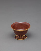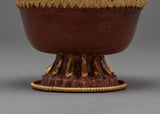 Offering Bowls are the most common offering in Tibetan Buddhist rituals. Our Offering Bowl is perfectly handmade, made of copper, and are neatly plated with gold around the edges and the roundabout edge. These exquisite handcrafted bowls are created on raised stands, made of copper on the inside and outside, with rounded edges plated with gold and are used for ceremonial purposes. They are arranged to form the "seven offerings".