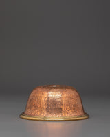 The Seven-Offering Bowls Set is a vital ritual tool in Tibetan Buddhism, handcrafted from copper with brass accents. Measuring 6 cm high with an 8.5 cm base, each bowl opens to 13 cm, perfect for morning or evening pujas, whether on a home altar or meditation shrine. Created by Nepali artisans, each hand-hammered copper bowl with brass detailing combines warmth, durability, and craftsmanship.
