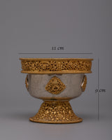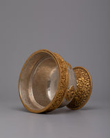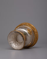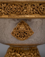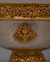 Every bowl in the set is an outstanding example of fine craftsmanship, with fine details and precise design. These offerings are made more luxurious by the combination of gold and silver plating, which raises them to the level of a holy worship ceremony. These bowls serve as concrete manifestations of respect and spiritual connectedness, whether they are used in regular rites and rituals or as decorative objects in hallowed areas.